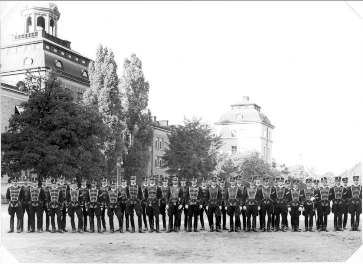Fotot taget på K 1 kaserngård. Eskort vid prins Eugens begravning, Stockholm augusti 1947.