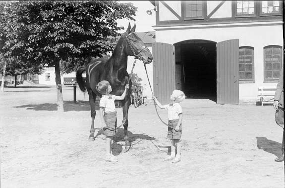 Löjtn. Harald Strömfelts två pojkar med en av tävlingshästarna som deltog i olympiaden i Berlin 1936. Mackintosh * * 1917-1936 deltog i fälttävlan. Corso 1918-1937 deltog i prishoppning.
