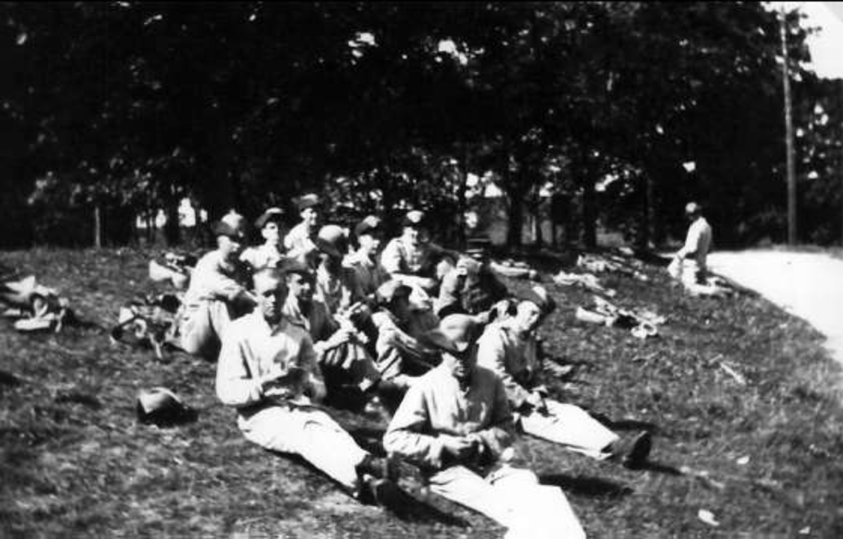 Ett bild- och textrepotarge av Paul Gibson, från en höstmanöver 1916 på Intendenturkompaniet Int 2 i Karlsborg. Här försöker de värnpliktiga själva att sy.