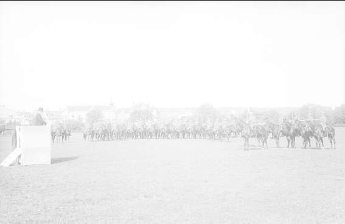 Regementsmötet 1931. Fältgudstjänst till häst på fältet söder om K 3 kasern vid kamratföreningens besök. O. Hermansson, regementspastor.