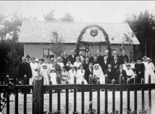 Karlsborgs Salemförsamling. Beda och Joel Erikssons bröllop i Hanken omkr år 1925. Förstoring 27 x 40 cm. Neg finns.