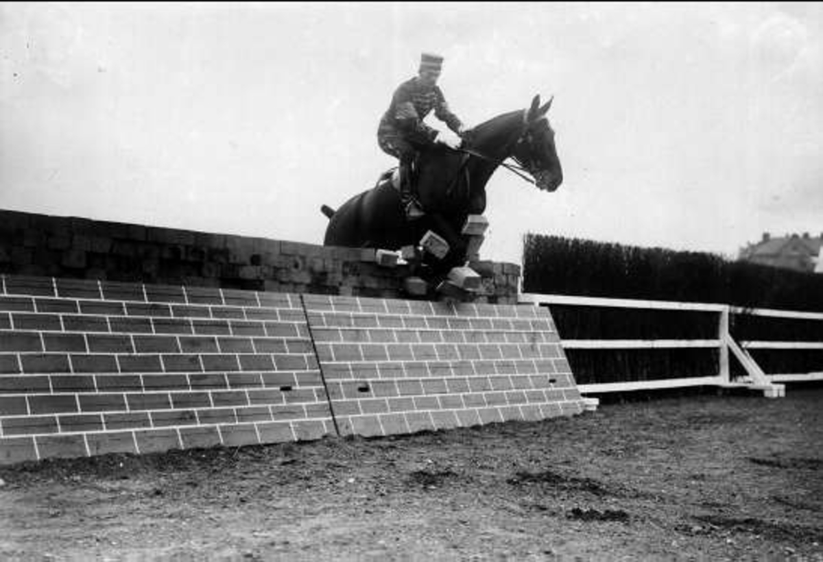 1. årseleverna på Strömsholmskursen på tävlingsresa till Stockholms fältrittklubbs tävlingar på Gärdet i Stockholm. Strömsholm 1910-11.