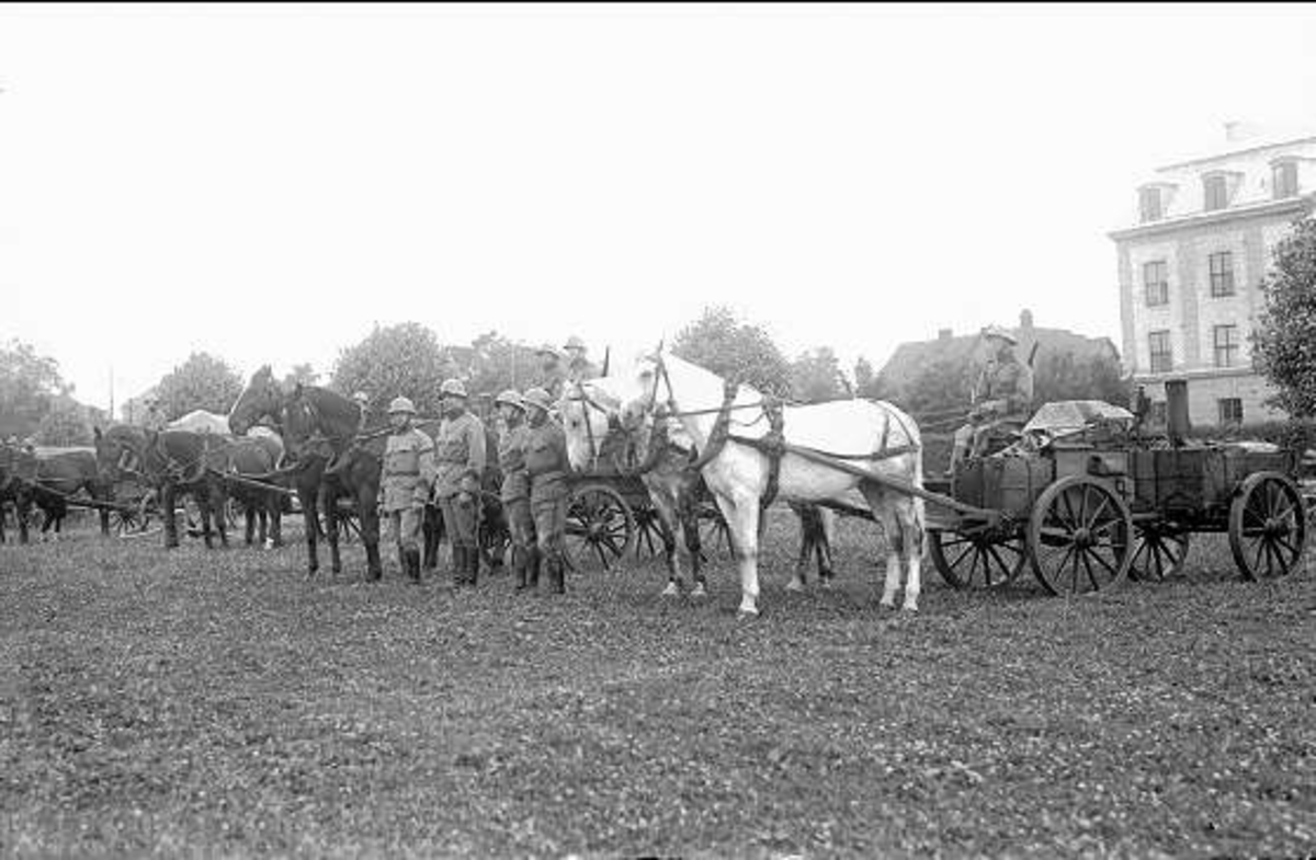 Regementets anspända tross färdig för avlämning till sommarmarsch 1931. Närmast kameran 4.skvadrons koktross.