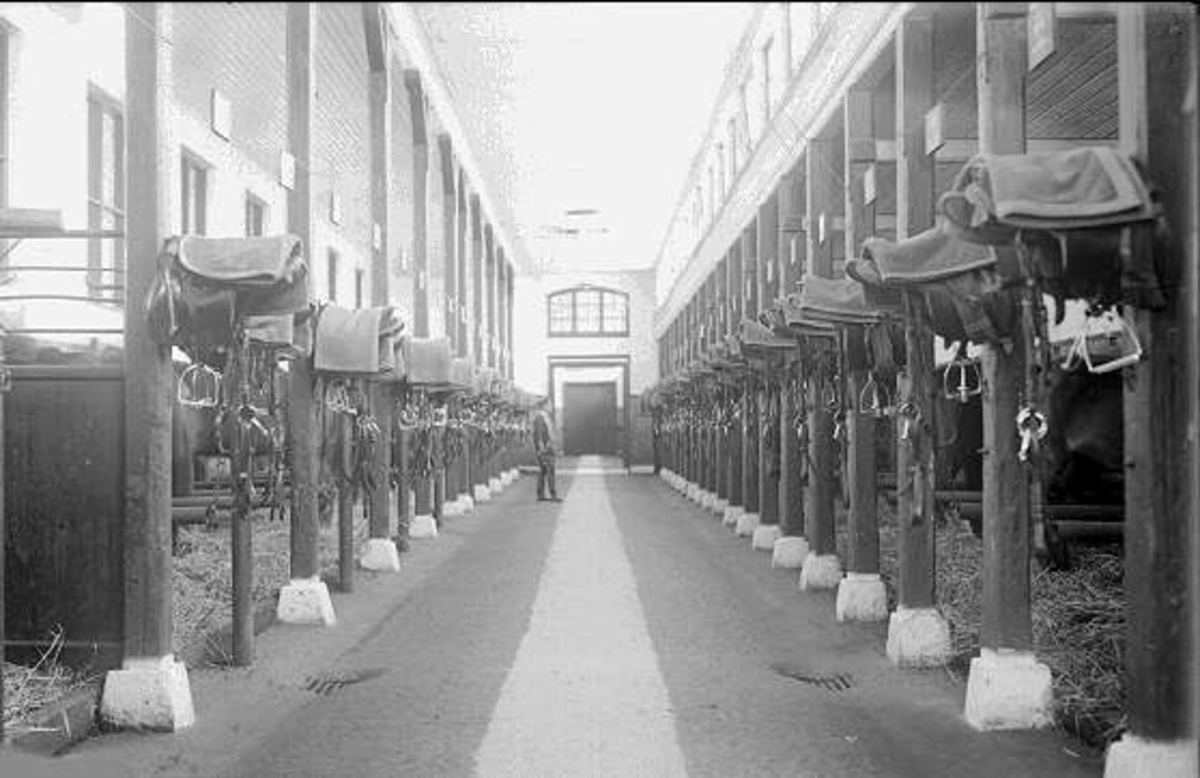 Stallinteriör: östra långstallet i ett av skvadronstallarna, K 3 Skövde.