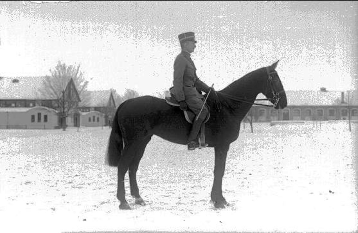 Ryttmästare Rolf Örn till häst, en utomordentligt skicklig prishoppningsryttare med många internationella segrar.