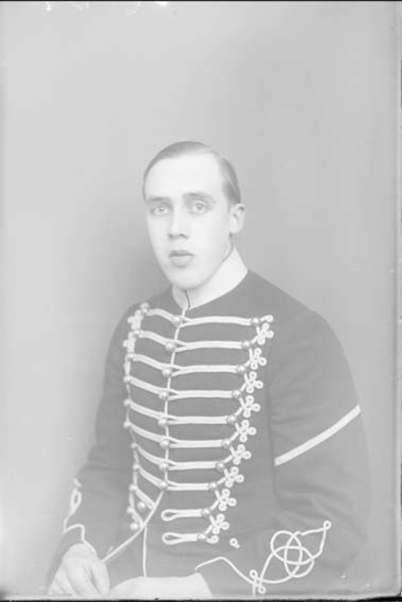 Livhusar med godkänd korpralskola, ett "skolstreck" på vänster ärm.