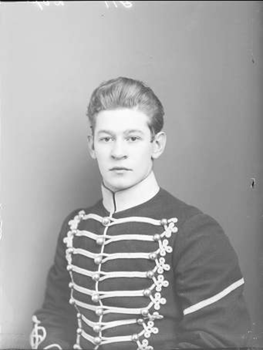 Titel: Livhusar med godkänd korpralskola, ett "skolstreck" på vänster ärm.