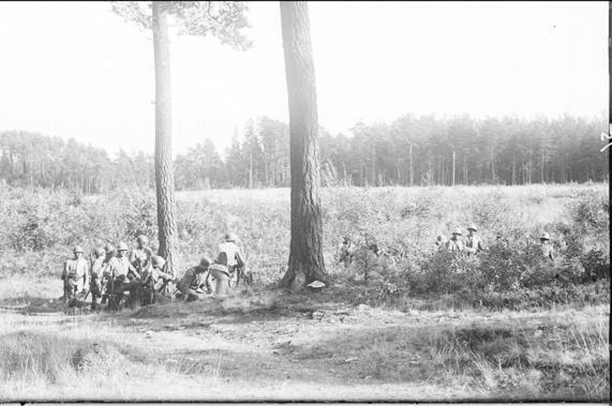 Aspirantskolan under inspektion av general Gyllenstierna i terrängtjänst. Skolchef ryttm. H. Strömfelt.