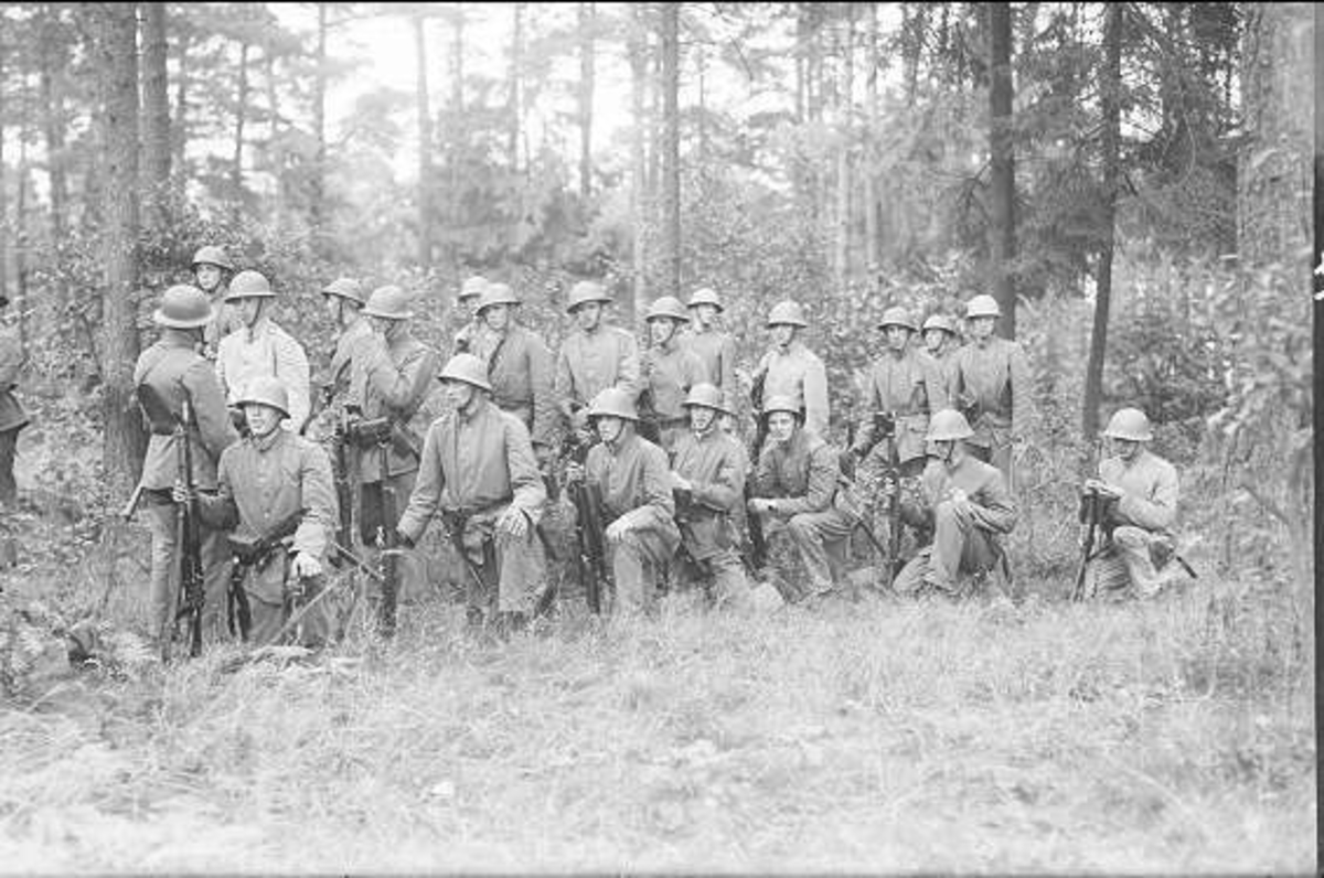 Aspirantskolan under inspektion av general Gyllenstierna i terrängtjänst. Skolchef ryttm. H. Strömfelt.