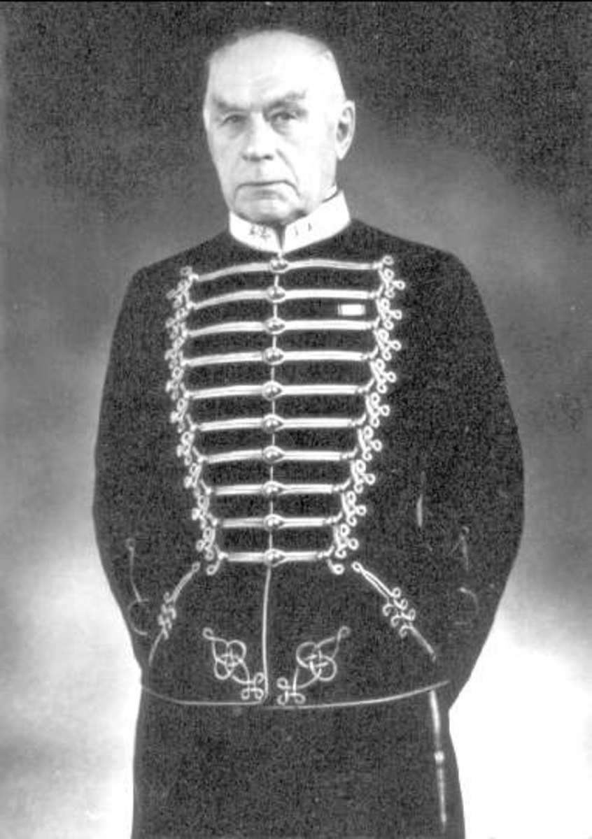 Porträtt av fanjunkare F-O Hallenberg, K 3, hedersbefordrades till löjtnant i armen. Skvadronsadjutant 2, skv K 3. Efter pension Volvoförsäljare.