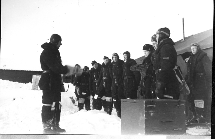 F6 Karlsborg 1942. Vinterövning 8/2-8/3 Piteå. Divisions-adjutant 2 divisionen fänrik Reuter ger order. Albumet är en del av en donation från Karl-Axel Hansson, Karlsborg. Förteckning över hela donationen finns i albumet samt som Word-dokument.