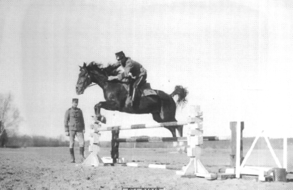 Hoppträning på fältet söder husarkasernen. Till vänster det så ofta använda riktmärket " v-formade björken".