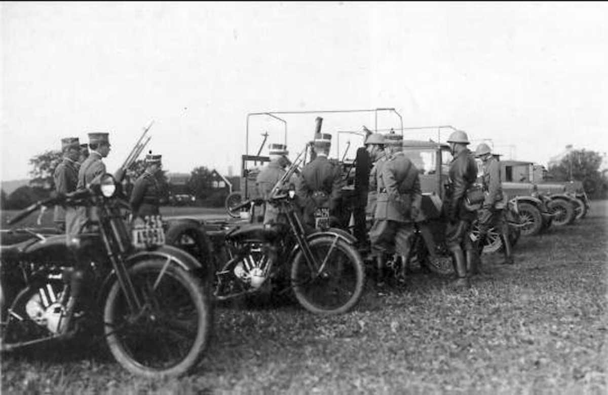 Försök med cykeltrupp, motorcykelpatrullen ingick i cykelskvadron. Antagligen mc/m/monark ("Albin").