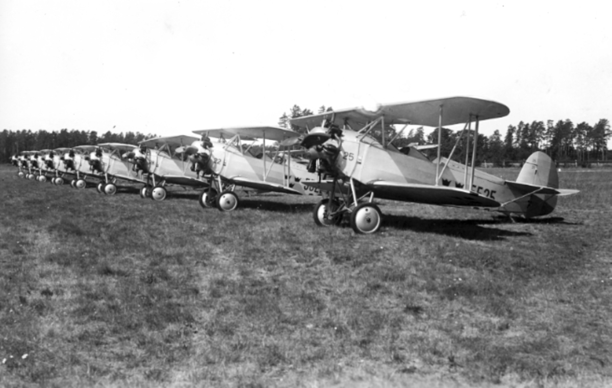 Karlsborg 1936. Startklara SK10:or på Karlsborgsfältet.