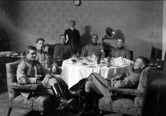 Mårten gås. Ragnar Aaby-Ericsson i mitten (till vänster om trattgrammofonen).