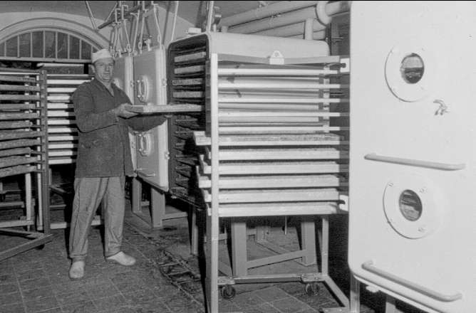 Proviantmagasinet (by 507) IFV. Tillverkning av vakuumtorkade soppor. Här arbetade ordinarie arbetsledare med tillfälligt anställda kvinnor.