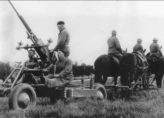 Luftvärnsartilleriet var från början hästanspänt som övrigt artilleri. Bofors 40 mm automatkanon på prov under 1930-talet.