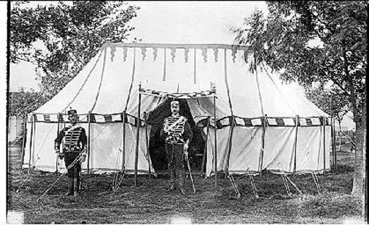 Sekundchefen, överste Carl Herman Wilhelm Leuhusen framför sekundchefstältet på Sanna hed.