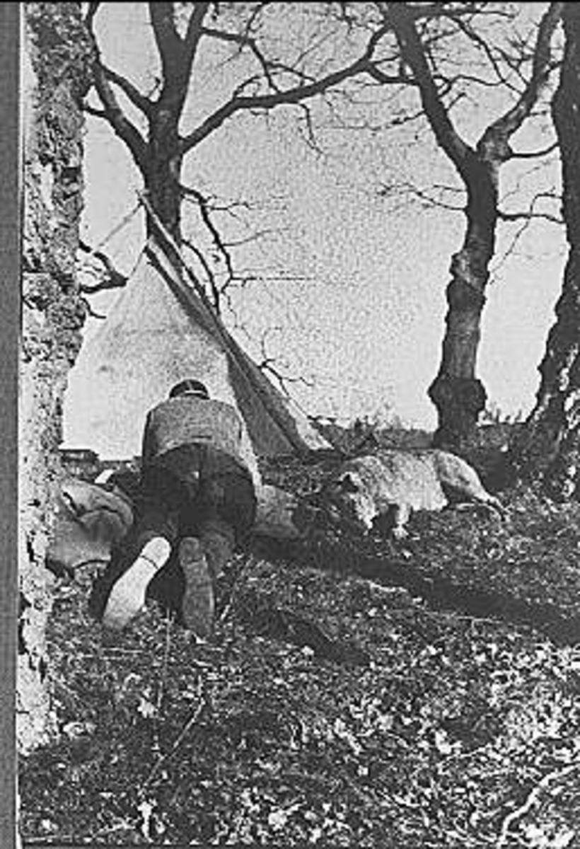 William Dickson och jag på marsch med krigsinkallade. Två trötta kumpaner utanför tältet.