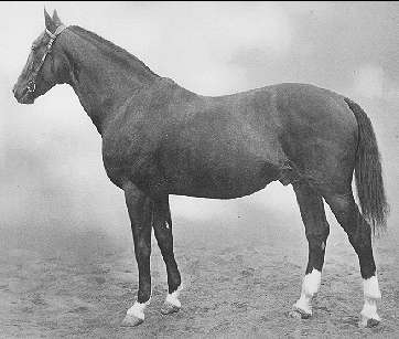Halvblod, svenskfödd fux med stjärn och fyra vita fötter. Mankhöjd 162 cm. Fader Solitär. Moder Aline efter Biederman. Uppfödare godsägare Stjernswärd Vidtsköfle. Ägare Strömsholms Hingstdepå född 1900.