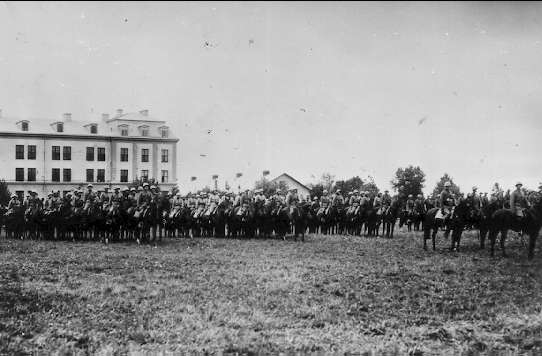 Regementet uppställt på fältet söder kasern före avmarsch till Vårgårda - manövern.