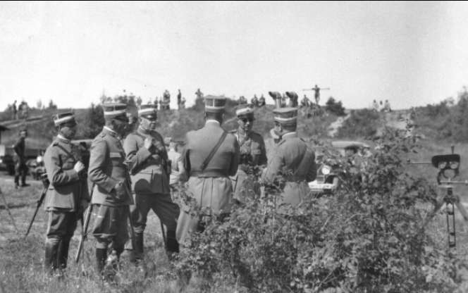 Inspektion av inspektören för artilleriet, överste Hammasköld, 1930 - 1933. Förstoring 26 x 39 cm.