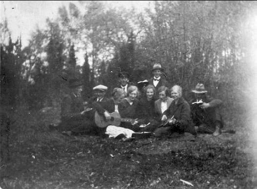Breviks missionsförsamling Kärret. Ungdomsföreningen på Gökotta vid Enebågens udde, Brevik. Neg finns.