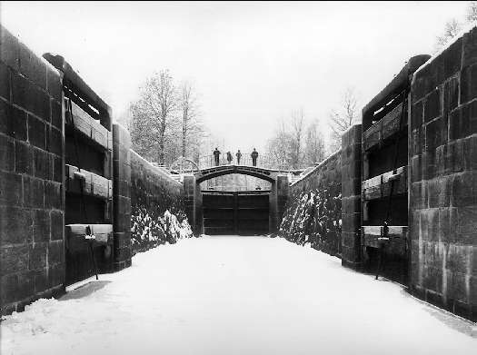 Göta kanal, Forsviks sluss. Foto: A Sjöberg, år 1905. Neg finns.