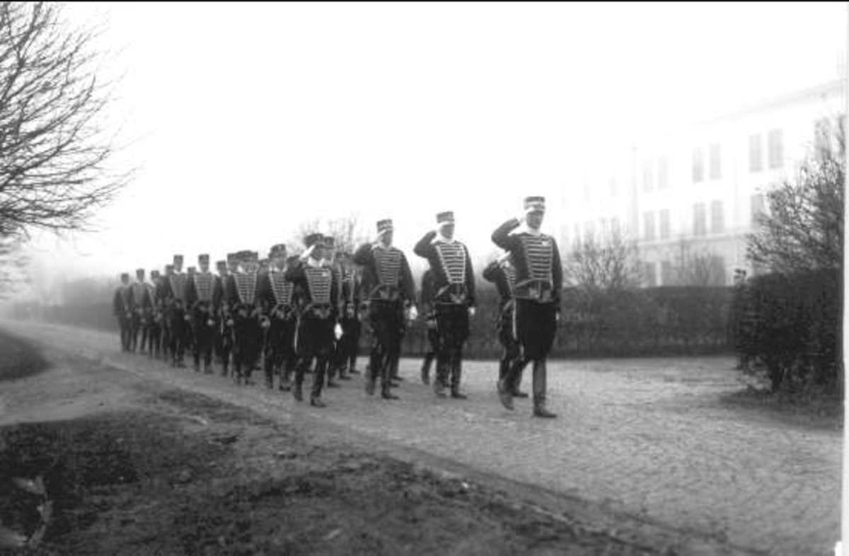 4 skvadron på marsch till firandet av 4 december i soldathemmet.