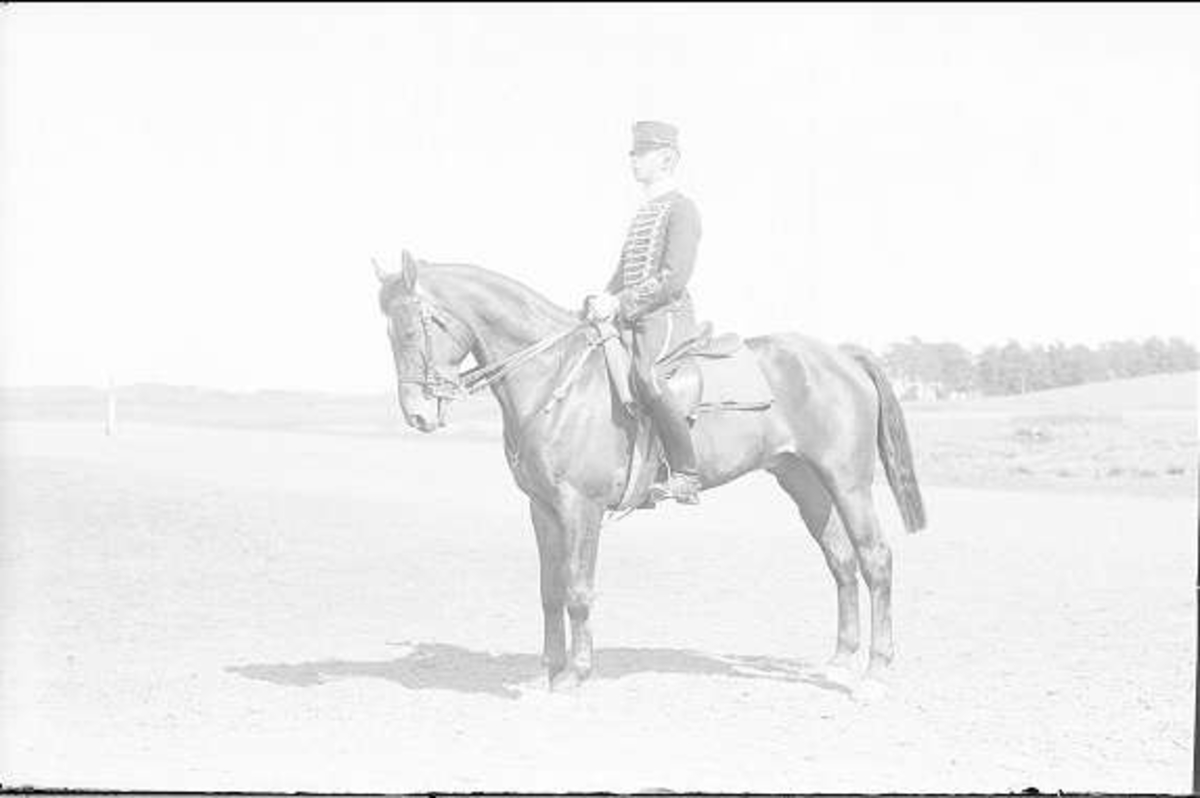 Aspirant på tilldelad stamhäst. Aspiranten iklädd regementets m/ä (K 3)