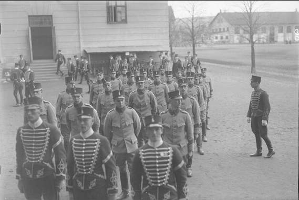 Inryckning efter korum och krigsmans erinran i exercishuset (Lundasalen).