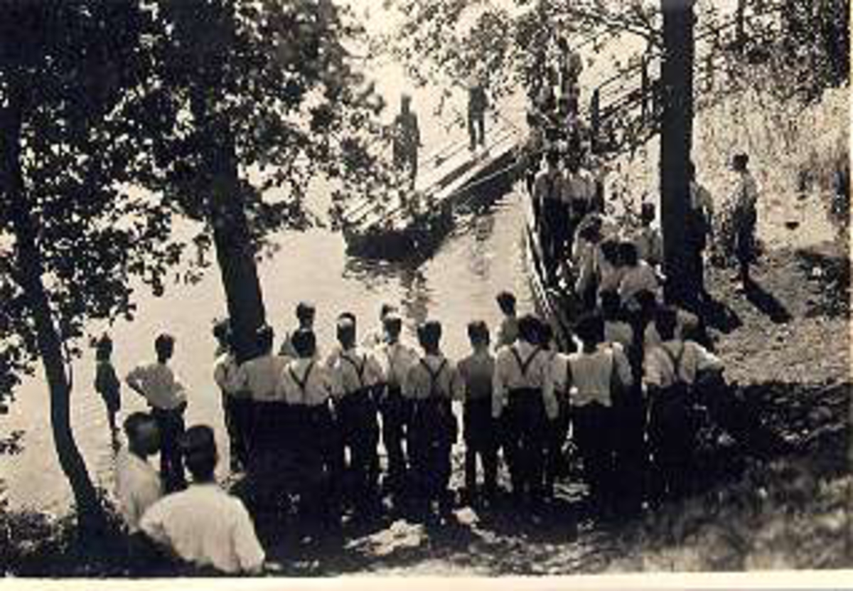 Officersaspirantskolan vid K 3 i Skövde 1929-30. Överskeppning med flotte på flytsäckar.