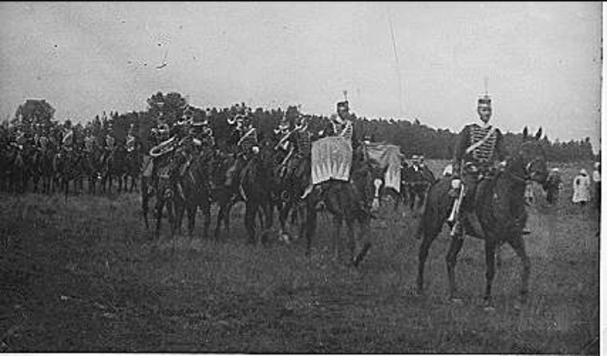 Invigningen av regementets minnessten på Sanna hed den 1 Augusti 1920. Skvadronens tät vid utryckningen ur lägret.