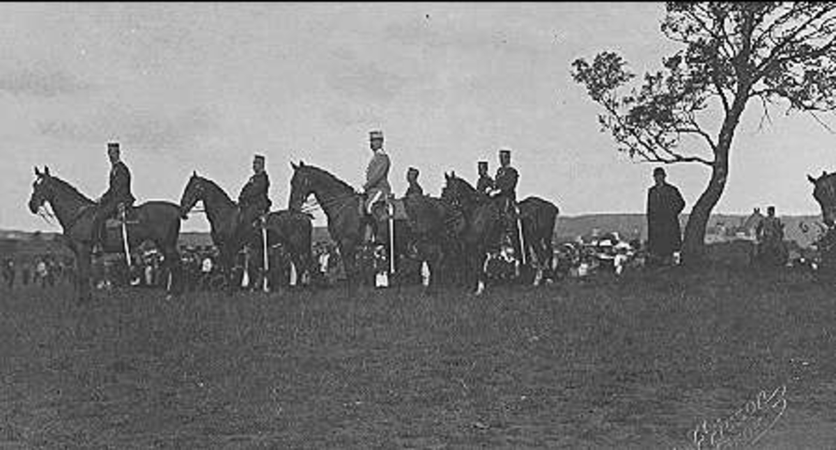 Hans Majestät Konungens besök juni 1910. Bilden tagen vid Björkdungen norr förvaltarbostaden. Området är nu Volvos B18-fabrik.