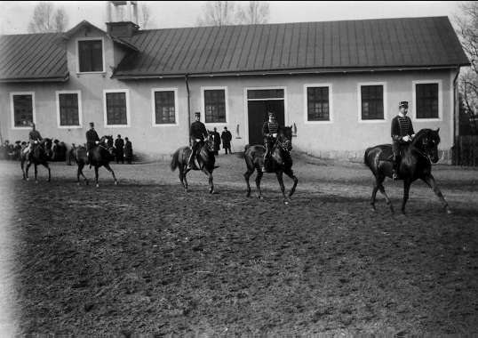Titel: Dressyrridning på stallplan - ökad trav. Strömsholm 1910-11.