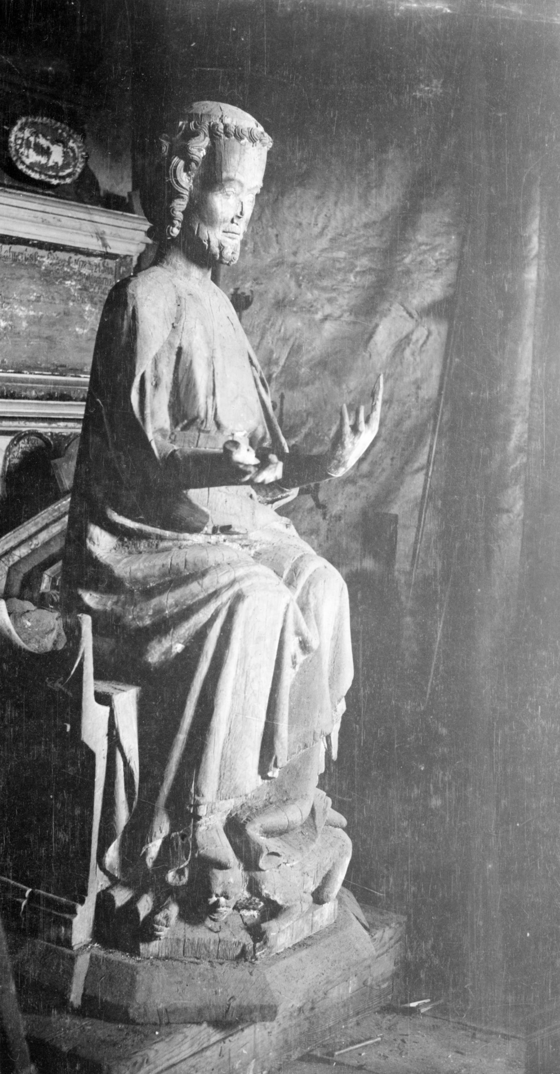 Skulptur i snidad ek, Sankt Olof, 1200-talet.