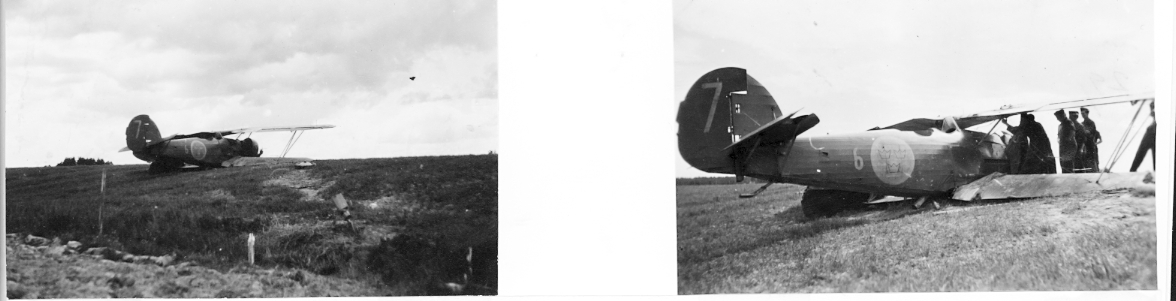 F6 Karlsborg 1945. Nödlandning 29/6 med en av F6 två sista B4:or vid Sörgården i Älgarås. Inga personskador. Flygförare var Kapten Ekdahl, passagerare flottiljens fotograf Linderoth. Albumet är en del av en donation från Karl-Axel Hansson, Karlsborg. Förteckning över hela donationen finns i albumet samt som Word-dokument.