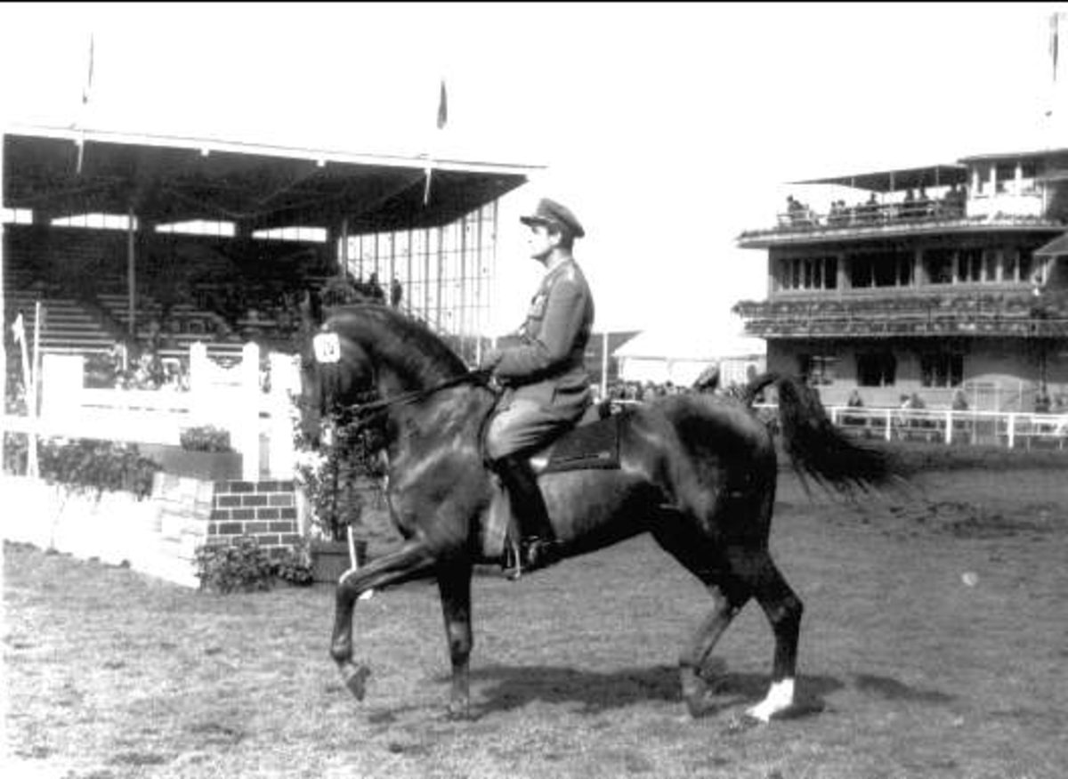 Ryttmästare Wiliam ("Bile") Hamilton på Delicado vid dressyrtävlingar i Aachen 1958.
