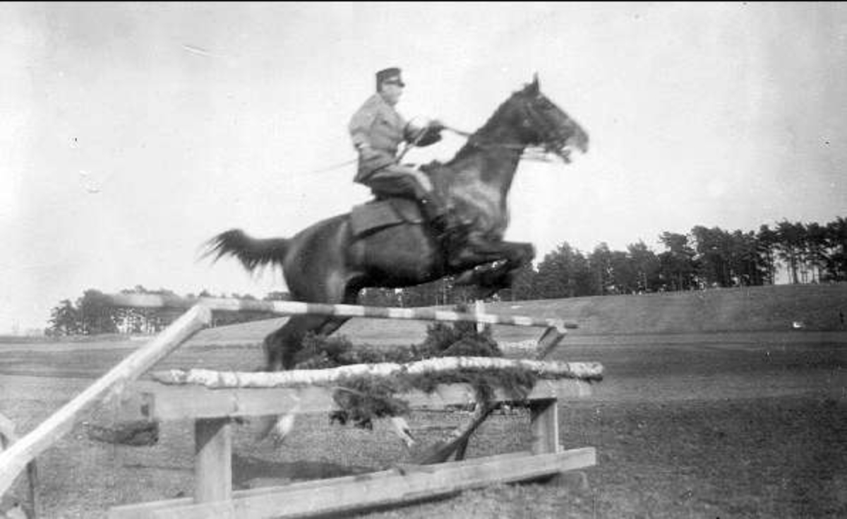Officersaspirantskolan vid K 3 i Skövde 1929-30. Hinderträning öster kasern: Det gäller att vara följsam med låg hand.