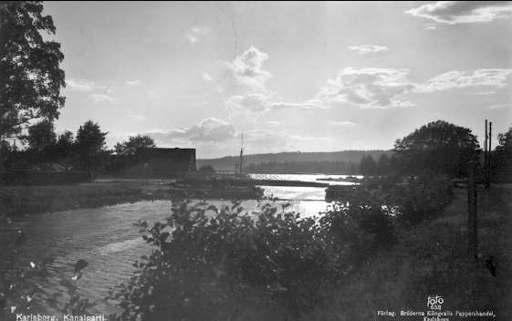 Kanalparti från Rödesund. Utsikt mot Bottensjön och Vaberget. Till vänster Palmqvists magasin, nuvarande Idas brygga.