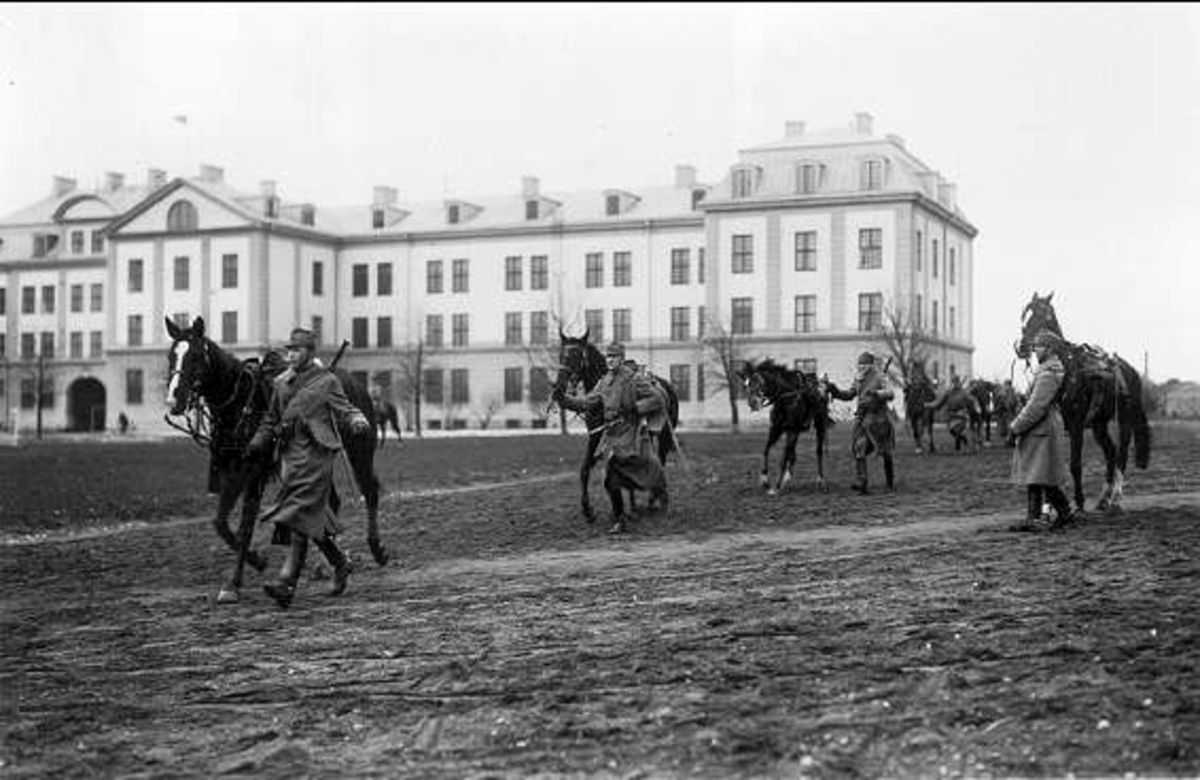 Officersaspirantskolan vid K 3 i Skövde 1929-30. En övningsdag: Visitation före utmarsch.