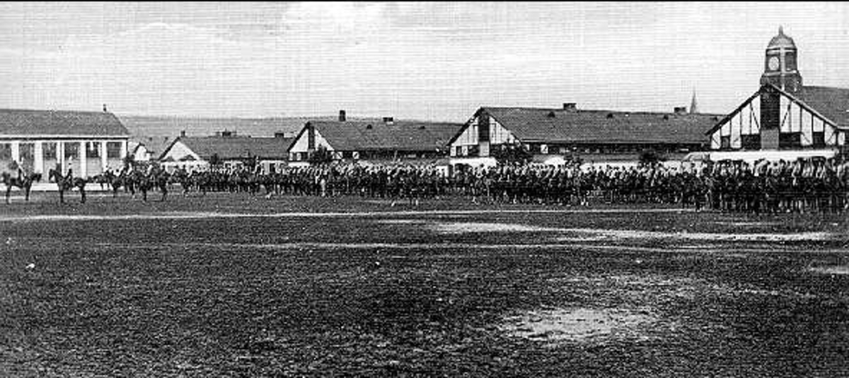 Kungliga livregementets husarer, kaserngården med stallarna. Nyårshälsning från Gustaf Ludvig Hamilton till Wilhelm von Essen.