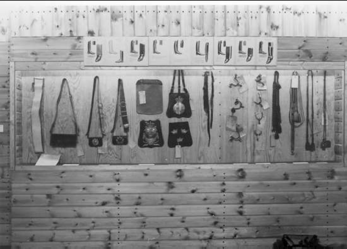 Uniformtillbehör i monter i Livhusarmuseets Utnäslötrum på K 3 i Skövde.