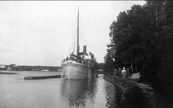 Göta kanal. Parti från Forsvik, passagerarbåten Pallas passerar. Foto: Axel Sjöberg.