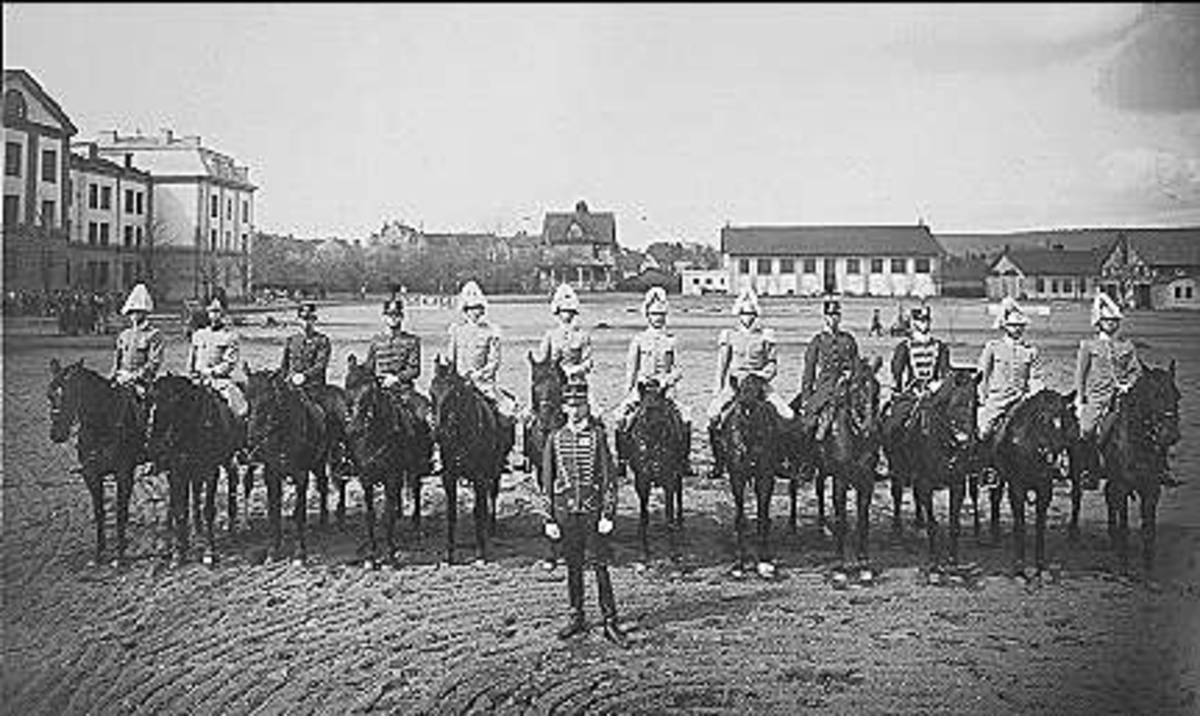 Kadrilj framför avdelningen, skolcefen ryttmästaren Rolf Örn.