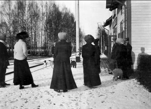 På perrongen vid Kvicksunds station. Strömsholm 1910-11.