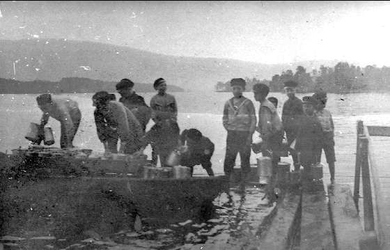 Forsvik, mjölkdistribution från herrgården till forsviksborna som bodde på bruket. Några av ynglingarna på bilden är nr 2 från höger Nils Malmqvist, nr 3 Erik Gustafsson, nr 4 Fritz Karlsson. Se även bilaga till 53438.