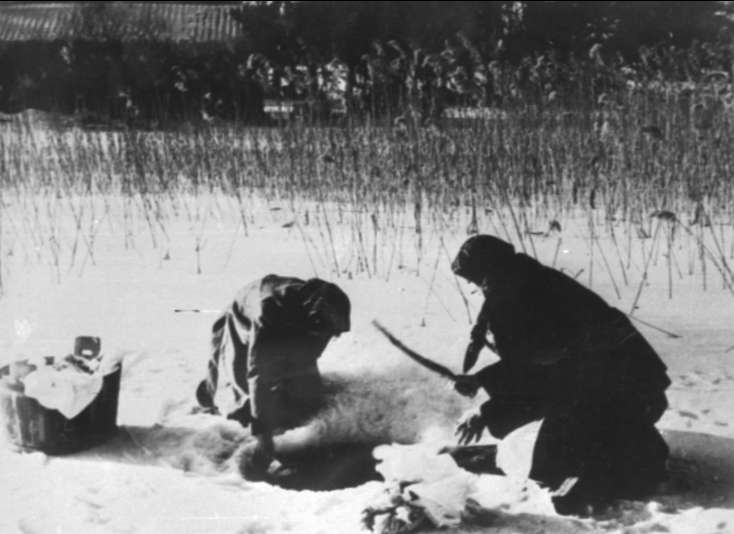 Tvättning, olika moment. Förstoring 23 x 38 cm. Neg finns.