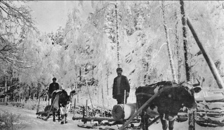 Granvik Hyttehamn, Oscar Eriksson med sin (oxe) "Åxe". Förstoring 30 x 50 cm. Neg finns.