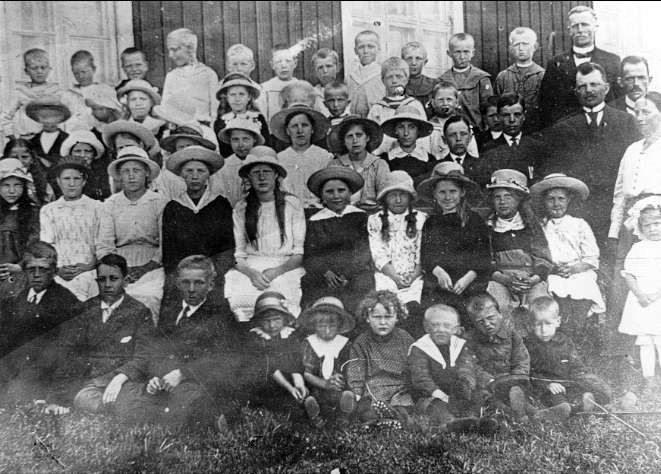 Undenäs missionsförsamling, söndagsskola år 1918. Förstoring 23 x 40 cm.